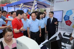 Ban lãnh đạo tham quan các chương trình & công nghệ khám sàng lọc tại khu vực khám sàng lọc của AstraZeneca Việt Nam